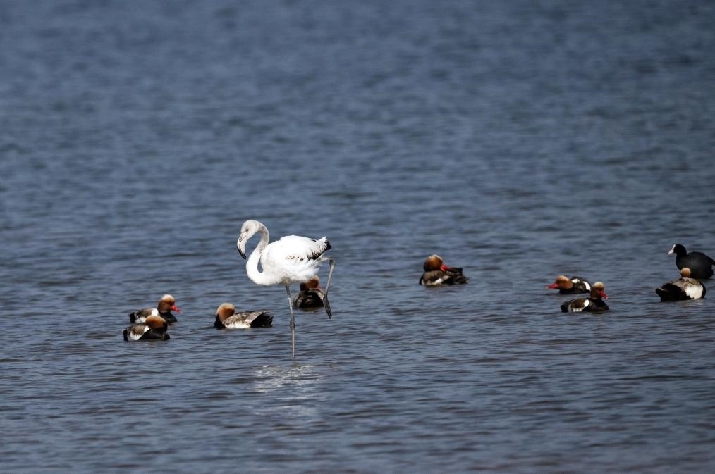 大紅鸛又稱大火烈鳥,主要生活在鹽水、淡水棲息地,喜歡結(jié)群生活,主要分布于熱帶、亞熱帶地區(qū),已被列入國家保護(hù)的有益的或者有重要經(jīng)濟(jì)、科學(xué)研究價值的陸生野生動物名錄。陳峰說:“大紅鸛在烏梁素海屬于‘迷鳥’,實(shí)屬罕見。我們已安排專人在湖區(qū)周邊實(shí)行重點(diǎn)巡查,防止人類活動干擾大紅鸛的棲息,給它營造出適宜、安全的棲息環(huán)境?!?/p>