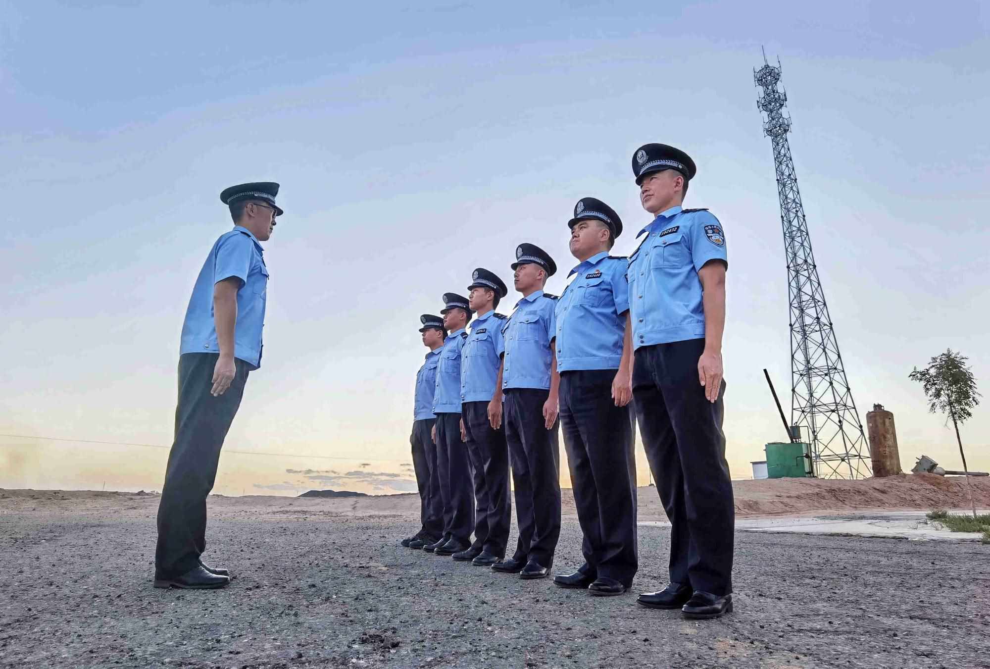 8月4日,內蒙古出入境邊境檢查總站阿拉善邊境管理支隊塔木素布拉格邊境派出所組織開展隊列訓練,培養(yǎng)民警令行禁止的工作作風,助力全警實戰(zhàn)大練兵。(王鵬飛攝)