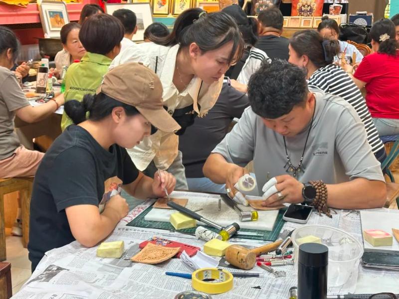 連日來(lái),皮雕技藝培訓(xùn)班也在如火如荼開(kāi)展。自治區(qū)級(jí)非遺項(xiàng)目皮雕技藝傳承人溫都爾木現(xiàn)場(chǎng)指導(dǎo)學(xué)員制作傳統(tǒng)皮雕,并將皮雕技藝創(chuàng)新應(yīng)用于錢包、腰帶等日常用品。“此次培訓(xùn)吸引了30多名農(nóng)牧民參與,我們不僅傳授傳統(tǒng)皮雕工藝,還教授阿拉善寶石鑲嵌技法,助力農(nóng)牧民掌握增收新技能,實(shí)現(xiàn)技藝傳承與增收致富雙贏?!睖囟紶柲靖嬖V記者?! ?/p>