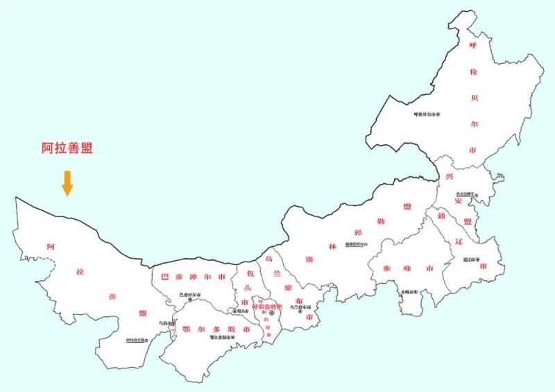 阿拉善盟地處內(nèi)蒙古自治區(qū)最西部,有“五彩斑斕之地”的美譽(yù),下轄3個(gè)邊境旗及策克、烏力吉兩個(gè)邊境口岸,邊境線全長735公里。世界三大胡楊林之一的額濟(jì)納胡楊林、世界三大載人航天中心之一的東風(fēng)航天城(酒泉衛(wèi)星發(fā)射中心)坐落于此。額濟(jì)納地區(qū)出土的居延漢簡,被譽(yù)為20世紀(jì)初中國古文獻(xiàn)四大發(fā)現(xiàn)之一。