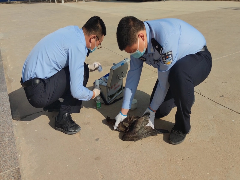 9月27日,內(nèi)蒙古巴彥淖爾邊境管理支隊巴音前達門邊境派出所民警及時救助一只國家二級保護動物鸕鶿。