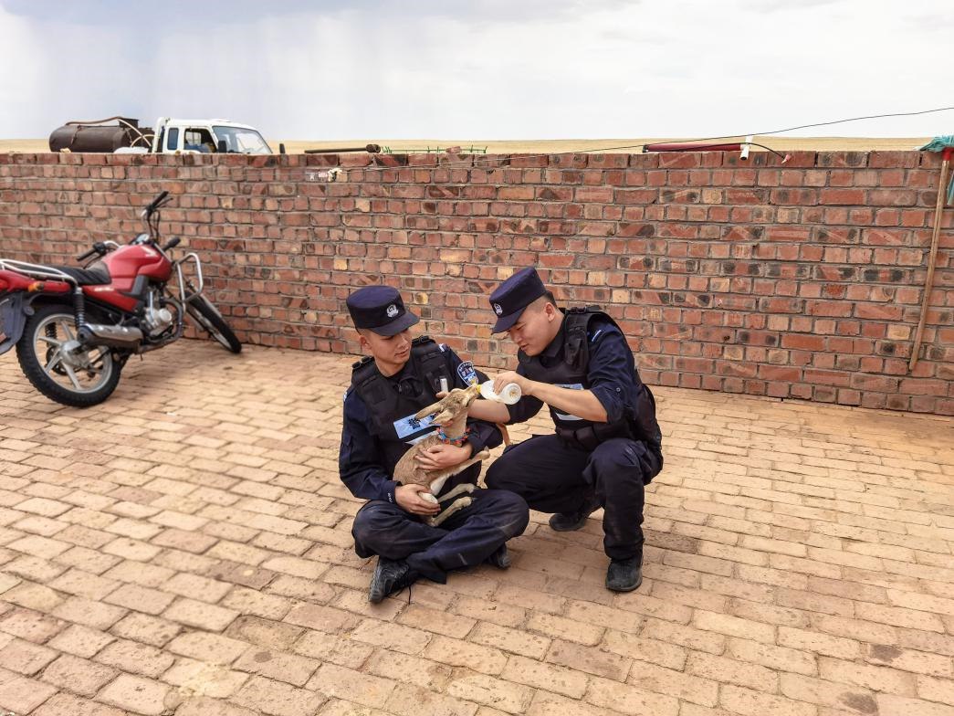“寶日夫大叔,黃羊的傷好轉了嗎?”7月14日,內蒙古巴彥淖爾邊境管理支隊甘其毛都邊境派出所民警來到護邊員寶日夫家,探望之前被救助的小黃羊,“已經可以走路了,多虧你們照顧!”