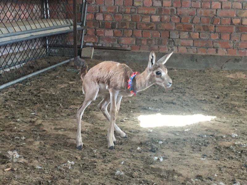 7月9日,甘其毛都邊境派出所民警與護邊員寶日夫在開展日常巡邊工作途中,發(fā)現(xiàn)一只受傷的黃羊幼崽伏在地上瑟瑟發(fā)抖。經檢查,這只小黃羊年齡約為4個月,左后肢疑似扭傷,無法正常行走,身體也極為虛弱。民警立即將小黃羊帶到護邊員寶日夫家中包扎救治。寶日夫夫婦還為小黃羊做了一個項圈掛在脖子上,希望它盡快痊愈,茁壯成長。