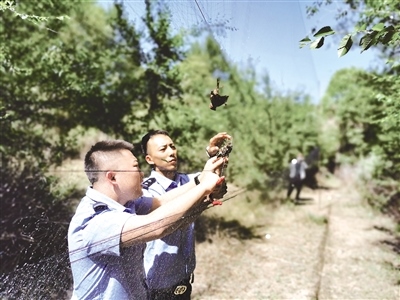 民警在周邊偵查,尚未發(fā)現(xiàn)可疑實(shí)施人員,民警及時對網(wǎng)上受困的野鳥進(jìn)行了解救和放飛,并對該處粘鳥網(wǎng)進(jìn)行了拆除、銷毀。