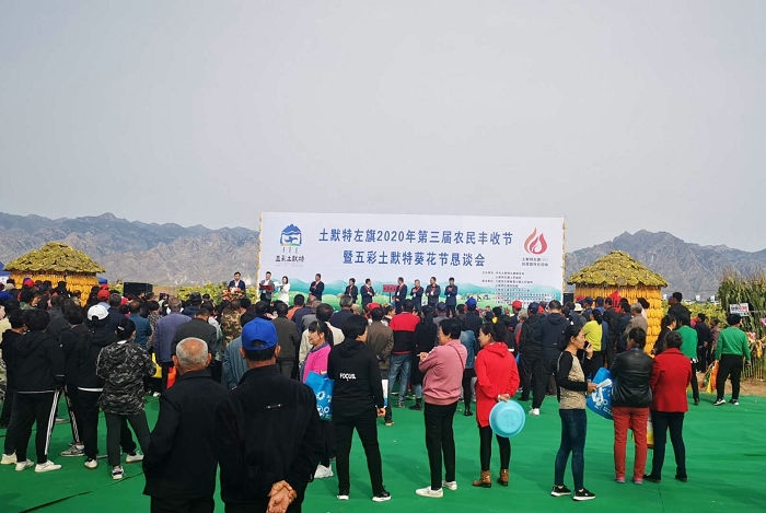 9月22日,內(nèi)蒙古土默特左旗第三屆農(nóng)民豐收節(jié)暨“五彩土默特”葵花節(jié)懇談會在敕勒川鎮(zhèn)只幾梁村舉行。