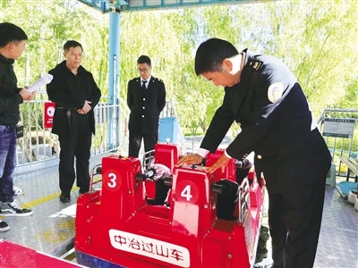 執(zhí)法人員對(duì)過(guò)山車(chē)進(jìn)行檢查