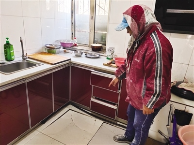 10月28日上午,記者再次來到阿木奈營村回訪,馬美蘭家和趙秀平家的暖氣片均已安裝,供熱良好。仍然有部分村民家的暖氣不熱,部分村民屋后的架空暖氣管道接口處漏水。村民馮翠梅苦惱地告訴記者,施工隊(duì)在她家房子后面安裝暖氣管道時(shí)挖開坑,下雨后坑內(nèi)積水滲漏到地基,導(dǎo)致她家廚房地基下沉。記者看到,下沉部分的大理石板已破碎,廚柜也有下沉。