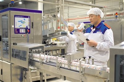 伊利液態(tài)奶生產(chǎn)線。