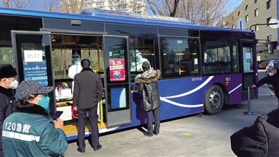 2月28日上午,在呼和浩特市新華大街附近,一輛敞開了玻璃窗的公交車停靠在道路旁,居民們按照規(guī)定間隔排隊,依次來到公交車前進行核酸采樣,醫(yī)務人員坐在車廂座椅有序地為市民進行核酸采樣,受檢人員不用上車,站在窗外,采完即走。