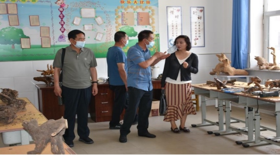 督導組一行來到學校的國畫、根雕、版畫、剪紙、中國結、古箏、架子鼓、素描、閱覽室、書法、電子琴、計算機、陶笛、卡祖笛、黨史學習等活動教室,張校長詳細介紹了開展多樣化課后服務情況。