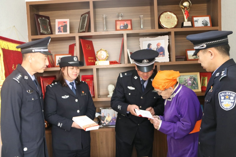 5月6日上午,民警們手捧鮮花來到都貴瑪老人家。一進家門,便為都貴瑪老人送上了節(jié)日的祝福。民警們與都貴瑪老人嘮起了家常,詳細詢問老人的身體狀況和生活情況。大家你一言,我一語,聊著聊著,就談到了當(dāng)前開展的黨史學(xué)習(xí)教育。民警們把自己的學(xué)習(xí)體會和收獲一一向都貴瑪老人作了匯報。都貴瑪老人說,自己也通過觀看《新聞聯(lián)播》了解到國家十四五開局之年和全黨開展黨史學(xué)習(xí)教育的相關(guān)內(nèi)容。特別是看到民警們帶來的黨史書籍時,都貴瑪老人和大家講述了他們那一代人如何利用蒙文版書籍學(xué)習(xí)黨章黨史的故事,再次回顧了習(xí)近平總書記為她授予“人民楷?!眹覙s譽稱號獎?wù)聲r的自豪和激動。