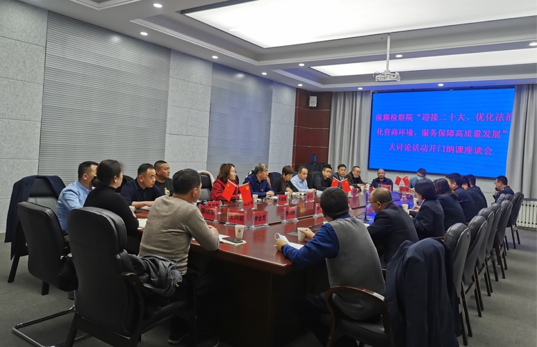 與會(huì)企業(yè)家代表對(duì)檢察機(jī)關(guān)依法保障企業(yè)和企業(yè)家合法權(quán)益、營(yíng)造法治化營(yíng)商環(huán)境給予了充分的肯定。立足各自企業(yè)的實(shí)際,表達(dá)了企業(yè)在發(fā)展過(guò)程中存在的困難和問(wèn)題,對(duì)進(jìn)一步優(yōu)化我旗法治化營(yíng)商環(huán)境提出看法,并就加強(qiáng)檢企交流、積極開(kāi)展“送法進(jìn)企”、加強(qiáng)“法律援助”等方面提出寶貴意見(jiàn),之后現(xiàn)場(chǎng)發(fā)放了“迎接二十大、優(yōu)化法治化營(yíng)商環(huán)境、服務(wù)保障高質(zhì)量發(fā)展”大討論活動(dòng)調(diào)查問(wèn)卷。