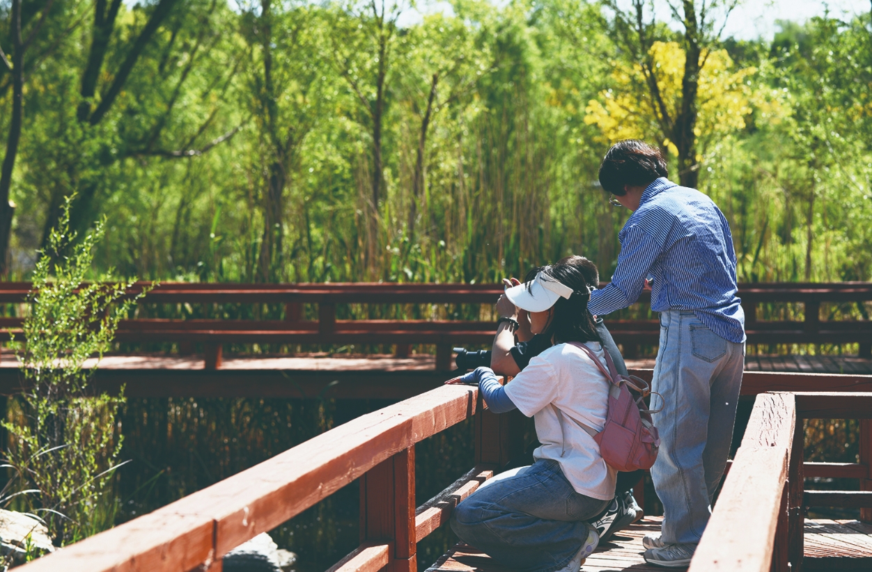 “霸王河生態(tài)公園景色好,不僅能看到滿眼的綠色,還能賞睡蓮、觀鳥類。家離得近,我們經常來?!笔忻駝Ⅸi說道。