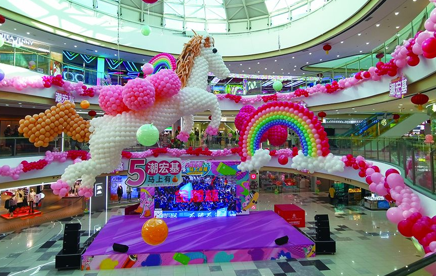 走進集寧區(qū)萬達廣場,一樓東門的跨年倒計時展板格外醒目,“約定,今年要和我愛的人一起跨年”的字樣搭配喜慶的紅色背景,將跨年的儀式感拉滿。商場內部的布置巧思盡顯,中庭位置,巨型氣球打造的白色小馬造型栩栩如生,粉色、橙色氣球簇擁左右,一旁的彩虹氣球裝飾蜿蜒舒展,與各品牌門前統(tǒng)一的彩色氣球相映成趣,簡約的裝飾搭配讓節(jié)日氛圍愈發(fā)濃郁。