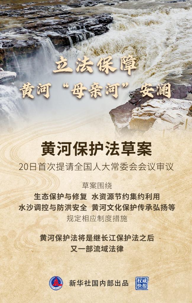 新華社北京12月20日電(記者劉詩平、王悅陽)黃河保護法草案20日首次提請十三屆全國人大常委會第三十二次會議審議。黃河保護法將是一部推動黃河流域生態(tài)保護和高質(zhì)量發(fā)展的法律,也將是繼長江保護法之后我國制定的又一部流域法律。