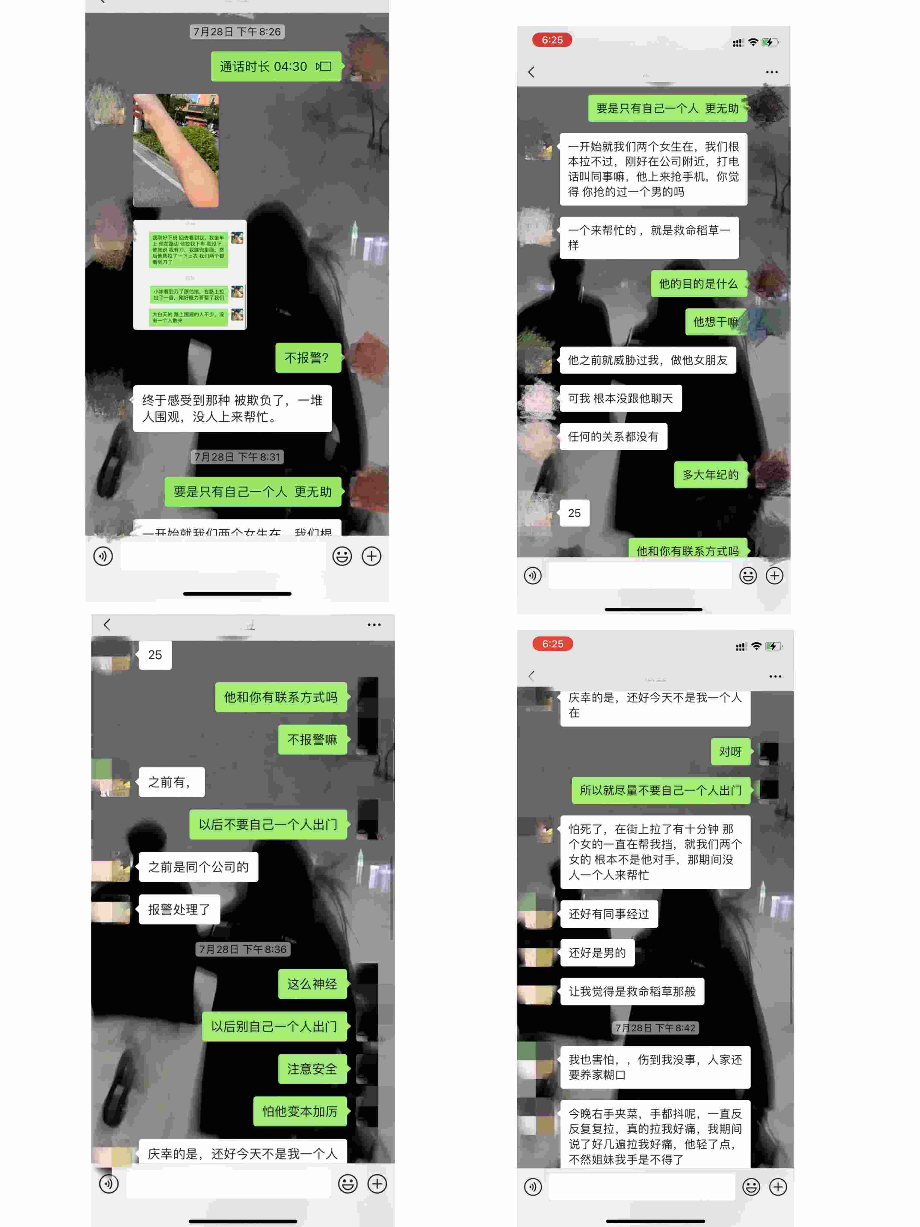 相關(guān)聊天截圖顯示,此次被黃某南威脅后,陳某萍和朋友在微信聊天時表示,“報警處理了”。陳某萍還表示,當時,黃某南拉她上衣時,她看到了刀,感到非常害怕,幸好有同事出手相助?!八熬屯{過我,做他女朋友??晌腋緵]跟他聊天,任何關(guān)系都沒有?!?/p>