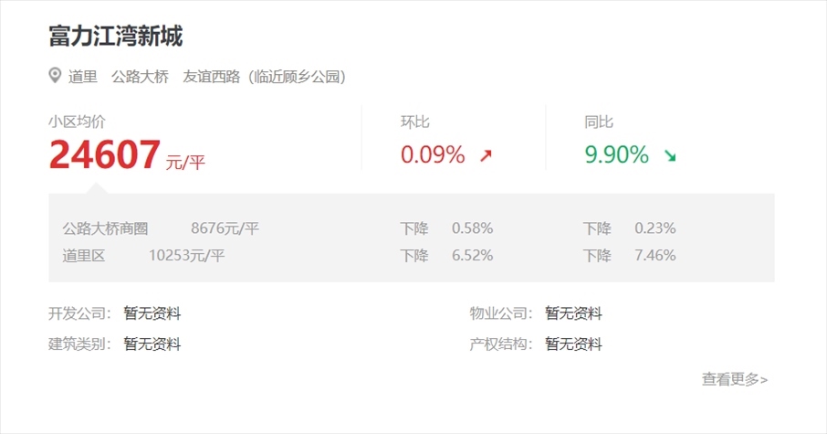 公開信息顯示,富力江灣新城地處哈爾濱道里區(qū)沿江核心地段,項(xiàng)目一期于2014年10月29日完成交房。房天下數(shù)據(jù)顯示,富力江灣新城目前二手房均價為2.46萬元/平方米。