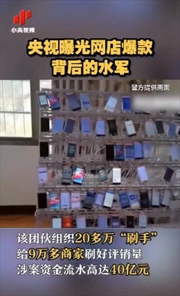 ·近日,央視曝光一“刷單控評”犯罪團伙,組織20多萬“刷手”,給9萬多商家刷好評銷量,涉案資金流水高達40億元。目前,涉案30余名犯罪嫌疑人被刑事拘留。