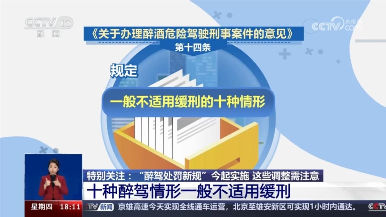 央視網(wǎng)消息:12月28日開始,《關(guān)于辦理醉酒危險(xiǎn)駕駛刑事案件的意見》,俗稱“醉駕處罰新規(guī)”正式實(shí)施。此前,《意見》由最高人民法院、最高人民檢察院、公安部、司法部聯(lián)合發(fā)布。