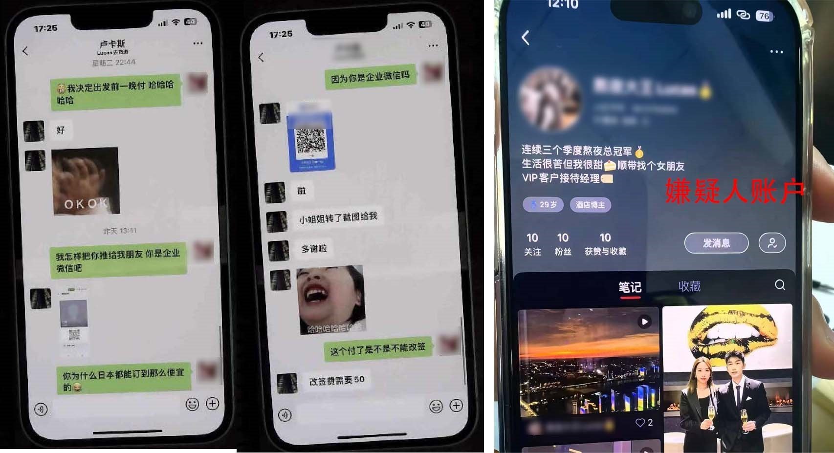立案?jìng)刹槠陂g,民警將涉及“熬夜冠軍”所關(guān)聯(lián)的受害人信息進(jìn)行了全量梳理,發(fā)現(xiàn)僅2023年12月至2024年2月就有9名受害人遭其詐騙,累計(jì)涉案金額達(dá)7萬(wàn)余元。其中還不乏有受害人從嫌疑人處“代定”海外酒店,結(jié)果舉家飛往國(guó)外發(fā)現(xiàn)錯(cuò)過淡季訂房,而被迫承擔(dān)更高昂的房費(fèi)。