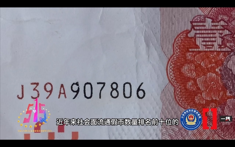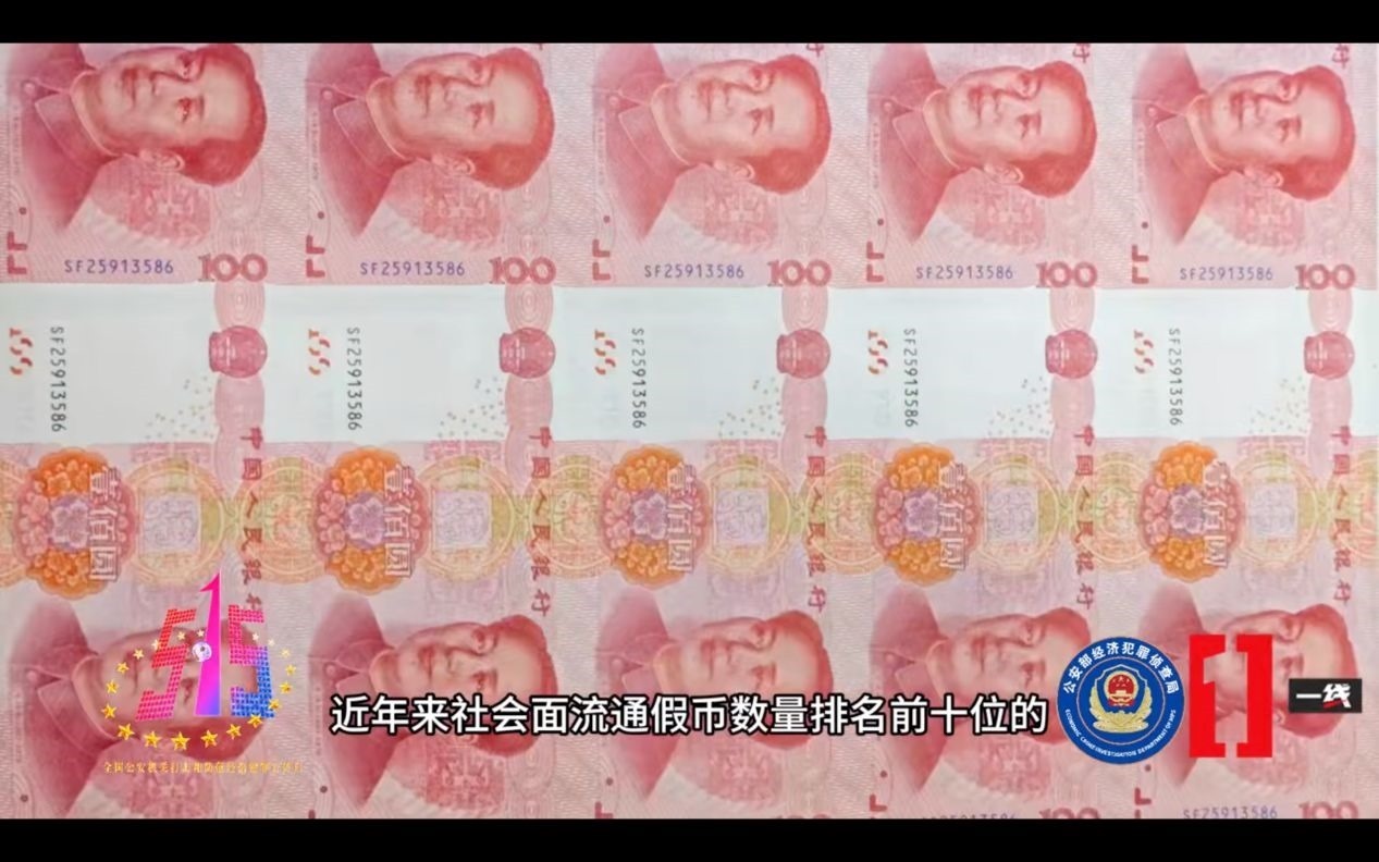 央視報道的2023年度打擊經(jīng)濟犯罪十大典型案例中,關于該案涉及假幣的相關畫面。