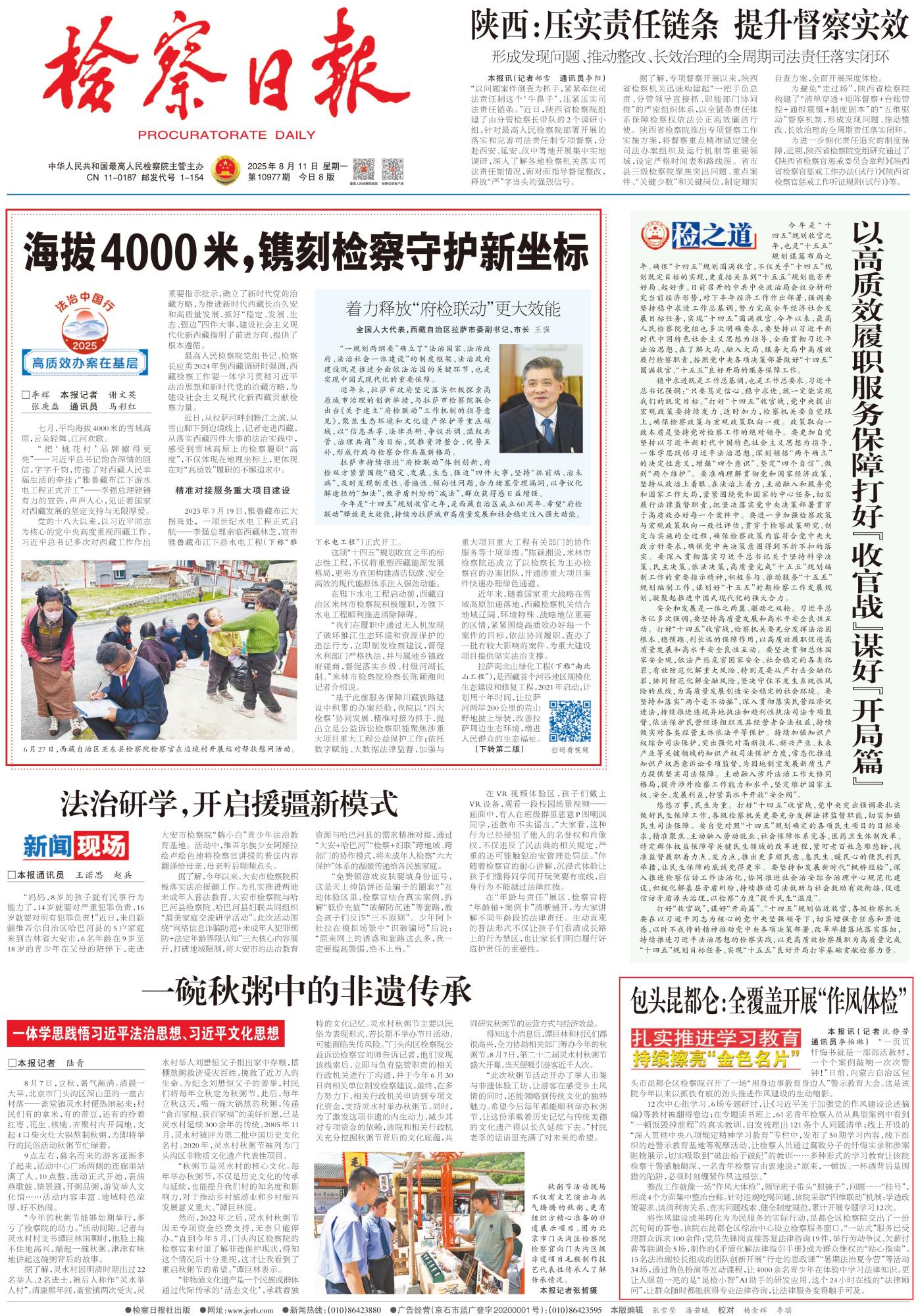 2025年8月11日,《檢察日報》第1版刊發(fā)題為《包頭昆都侖:全覆蓋開展“作風體檢”》的文章,報道了內(nèi)蒙古自治區(qū)包頭市昆都侖區(qū)檢察院召開了一場“用身邊事教育身邊人”警示教育大會。這是該院今年以來以抓鐵有痕的勁頭推進作風建設(shè)的生動縮影。