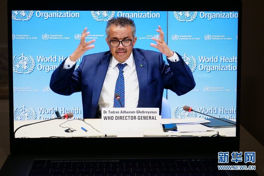 這是6月29日拍攝的世界衛(wèi)生組織總干事譚德塞在瑞士日內(nèi)瓦出席線上記者會(huì)的視頻畫面。新華社記者張鋮攝
