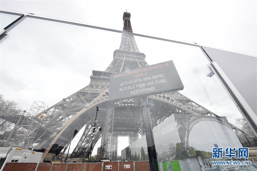 這是3月14日,在法國(guó)巴黎,埃菲爾鐵塔下豎立著“因新冠肺炎疫情而無(wú)限期關(guān)閉”的告示牌。新華社發(fā)(杰克·陳攝)