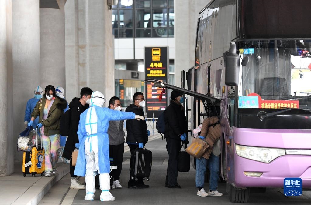 3月5日,抵達(dá)鄭州新鄭國際機場的中國公民準(zhǔn)備前往隔離酒店。當(dāng)日上午9時46分,第二架接返自烏克蘭撤離中國公民臨時航班安全抵達(dá)鄭州。新華社記者 郝源 攝
