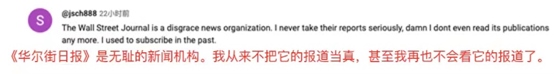 網(wǎng)友@jsch888說:“《華爾街日報》是無恥的新聞機(jī)構(gòu)。我從來不把它的報道當(dāng)真,我甚至再也不會看它的報道了。”