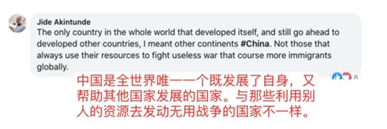 網(wǎng)友盧克蒙·奧拉德潑·法布恩米說:“撒謊者已經(jīng)被指出來了,他們批評中國制造的一切,但被人發(fā)現(xiàn)他們的指責(zé)毫無根據(jù)。中國干得漂亮?!?/p>