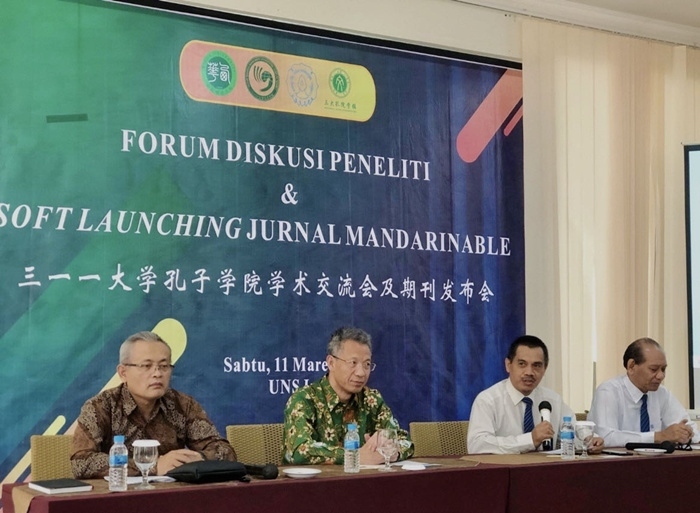 人民網雅加達3月12日電 (記者張杰)11日下午,三一一大學孔子學院學術期刊《Mandarianable》發(fā)布會及四周年生日會在梭羅隆重舉行。西華大學校長劉樹根、三一一大學學術事務副校長(尤努斯)Mr.Yunus教授、研究與創(chuàng)新副校長(坤卓落)Mr.Kuncoro教授、合作與信息副校長(夏啟丹)Mr. Sajidan教授、成都市政府代表潘文吉、張友東、羅會成、三一一大學部分院系代表等嘉賓出席了本次發(fā)布會。