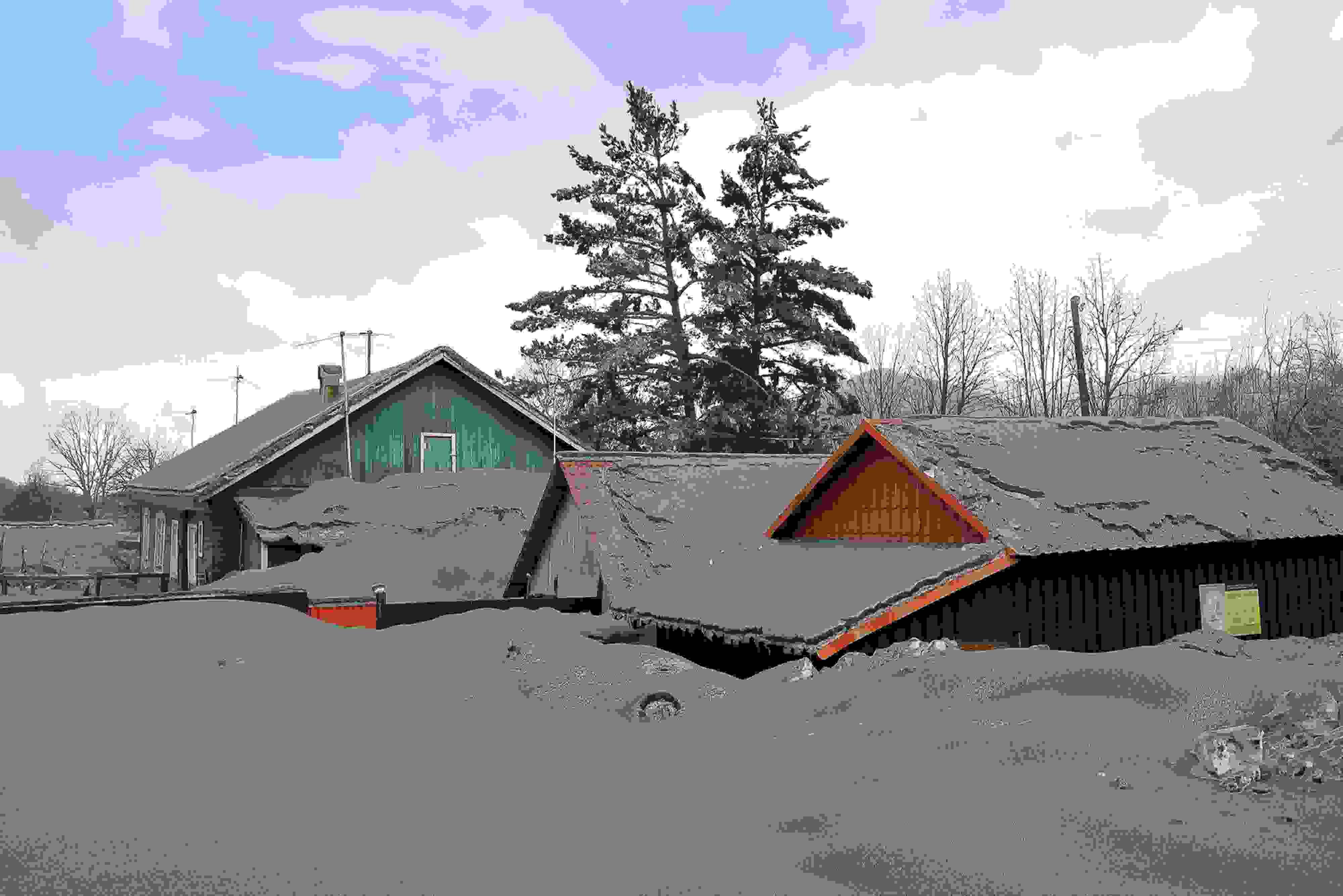 當(dāng)?shù)貢r間2023年4月12日,俄羅斯勘察加半島,希韋盧奇火山噴發(fā)后,周邊村莊被火山灰覆蓋。希韋盧奇是堪察加半島最大的火山之一,海拔3283米。 視覺中國