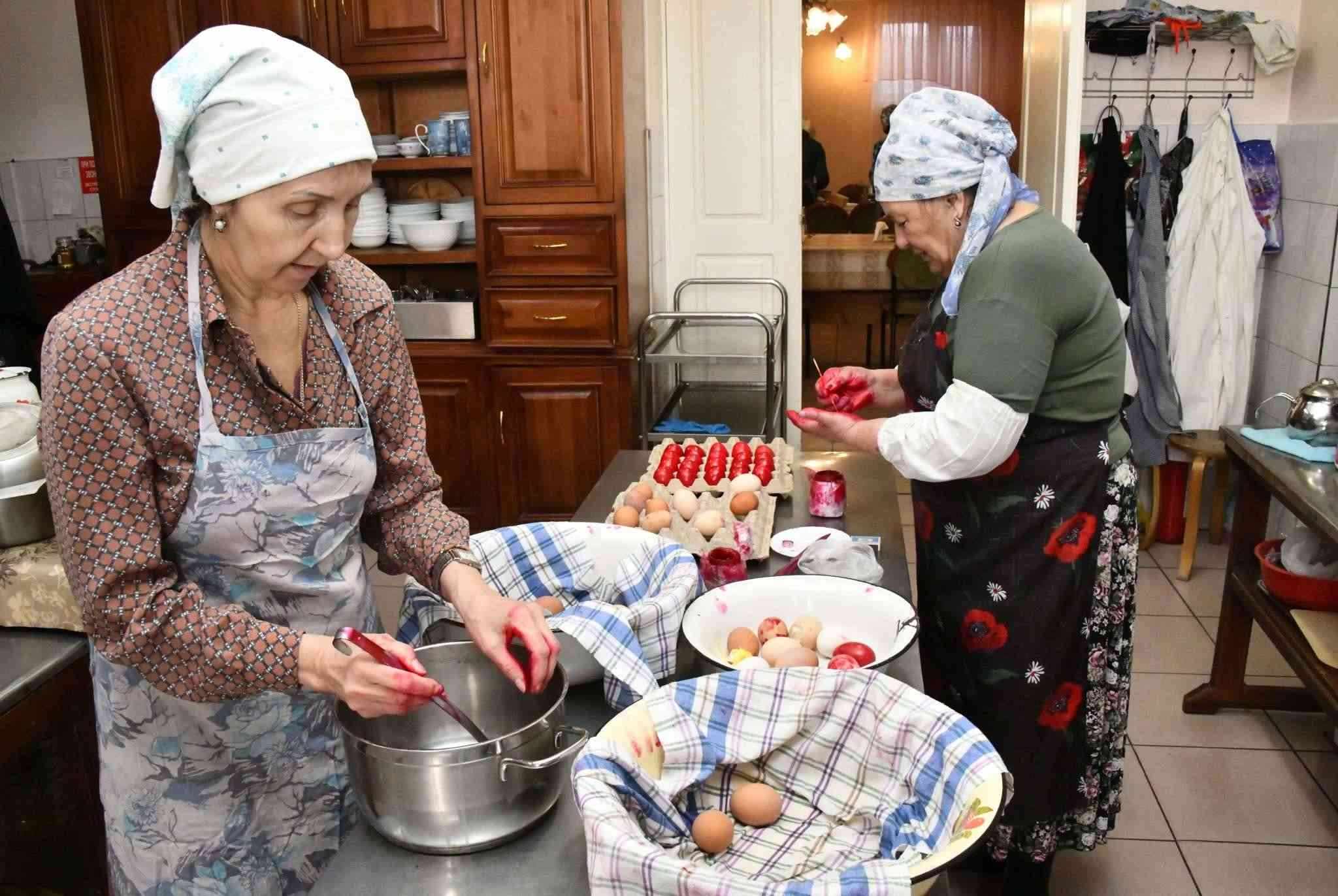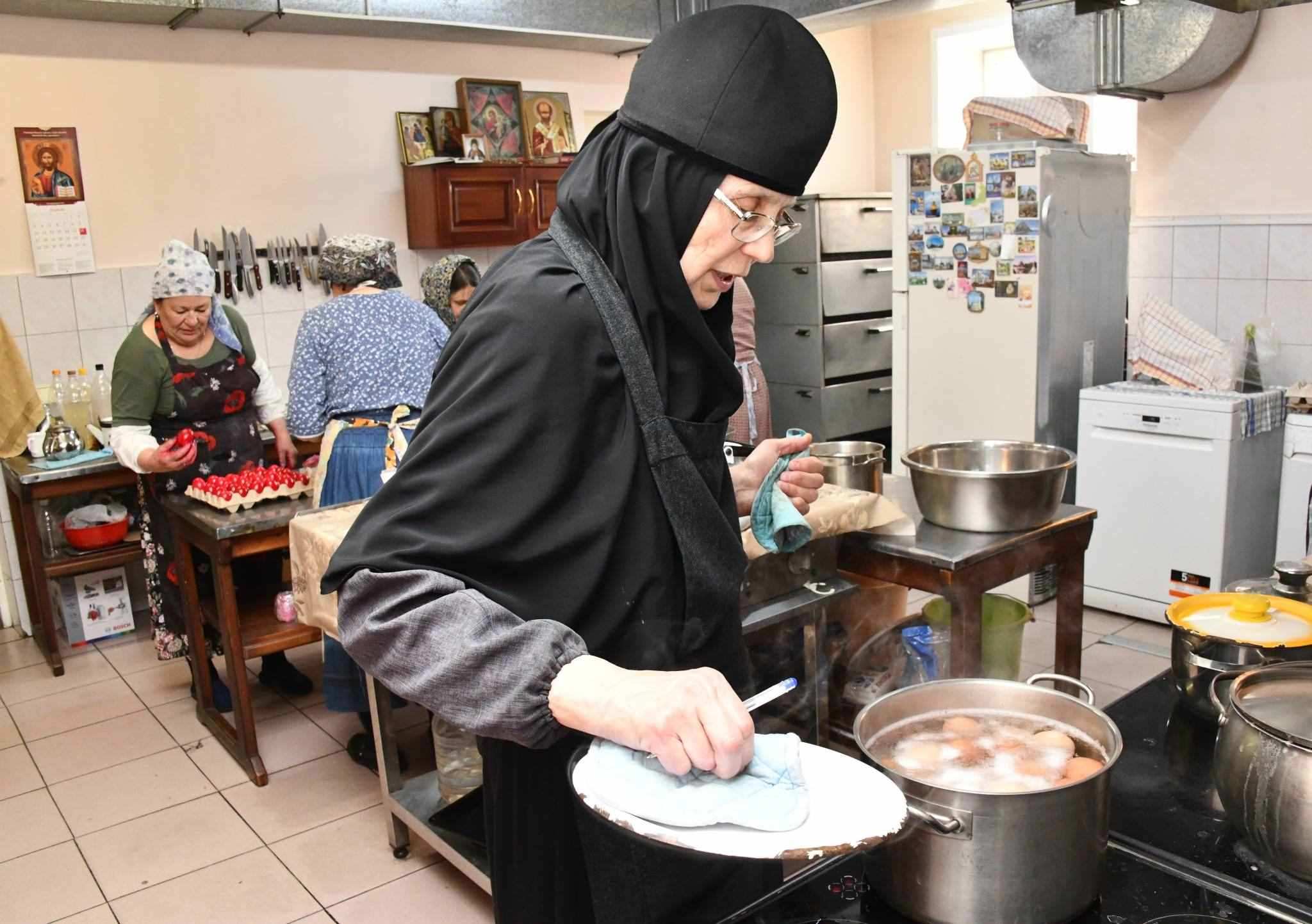 當(dāng)?shù)貢r(shí)間2023年4月13日,俄羅斯扎貝卡爾斯基地區(qū),阿塔馬諾夫卡定居點(diǎn)的一修道院內(nèi),民眾在制作東正教復(fù)活節(jié)前的傳統(tǒng)煮雞蛋。視覺中國