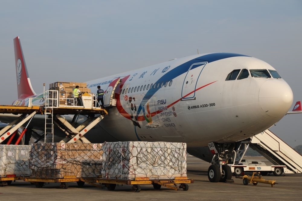 這是2023年1月19日在緬甸仰光國際機場拍攝的中國政府援助緬甸的新冠疫苗。新華社發(fā)(中國駐緬甸使館供圖)