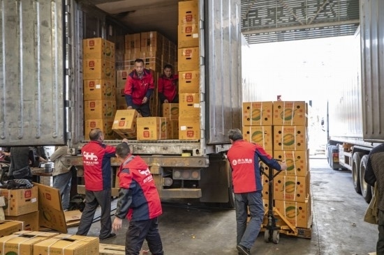 在重慶市江津區(qū)雙福農(nóng)貿(mào)城,洪九果品的工作人員在搬運(yùn)從泰國(guó)運(yùn)輸過來(lái)的榴蓮(2022年4月19日攝)。新華社記者 黃偉 攝