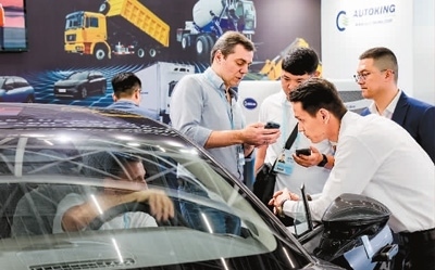 日前,外國采購商在廣交會新設(shè)置的新能源及智能網(wǎng)聯(lián)汽車展區(qū)了解中國新能源汽車產(chǎn)品。新華社記者 劉大偉攝