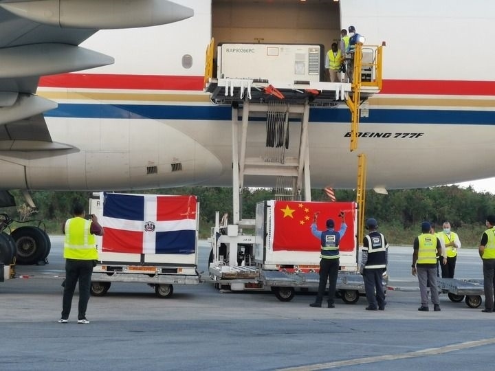 2021年3月17日,運載中國新冠疫苗等物資的飛機抵達多米尼加首都圣多明各。新華社發(fā)(中國駐多米尼加大使館供圖)
