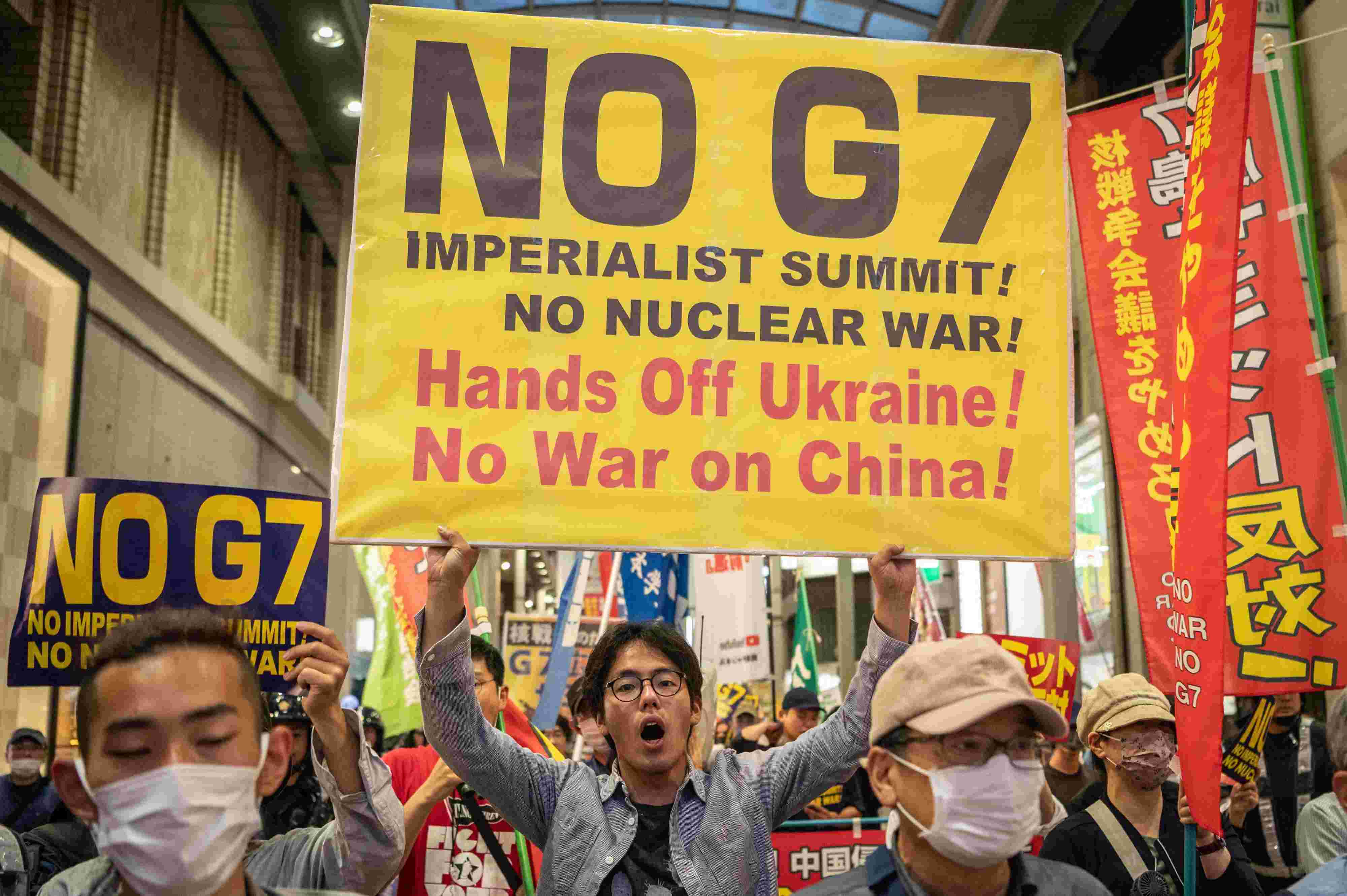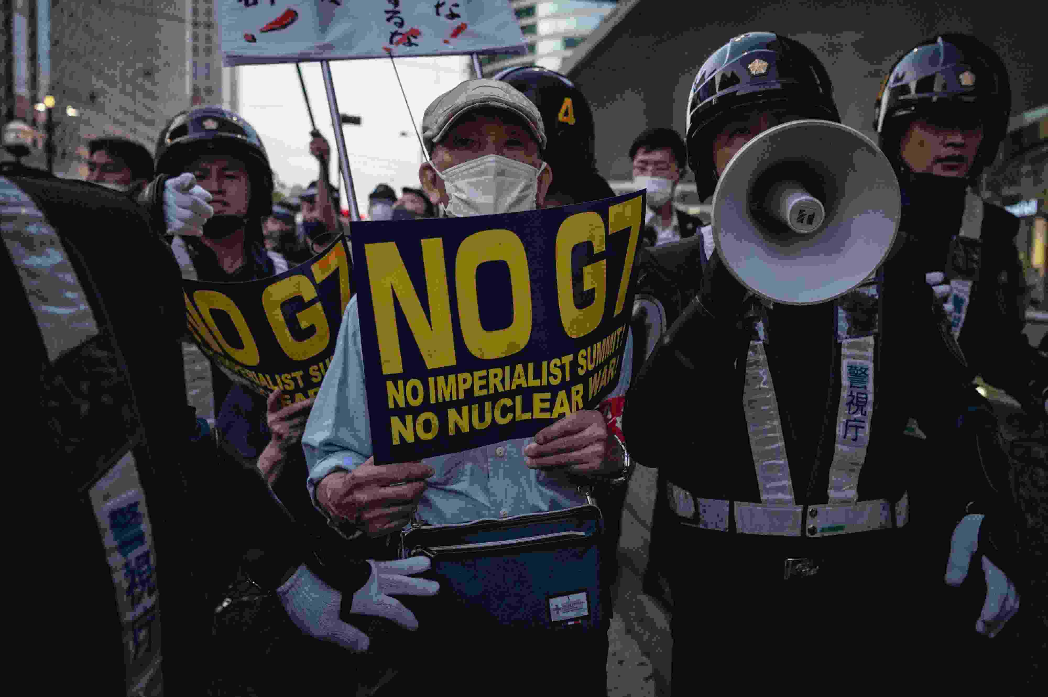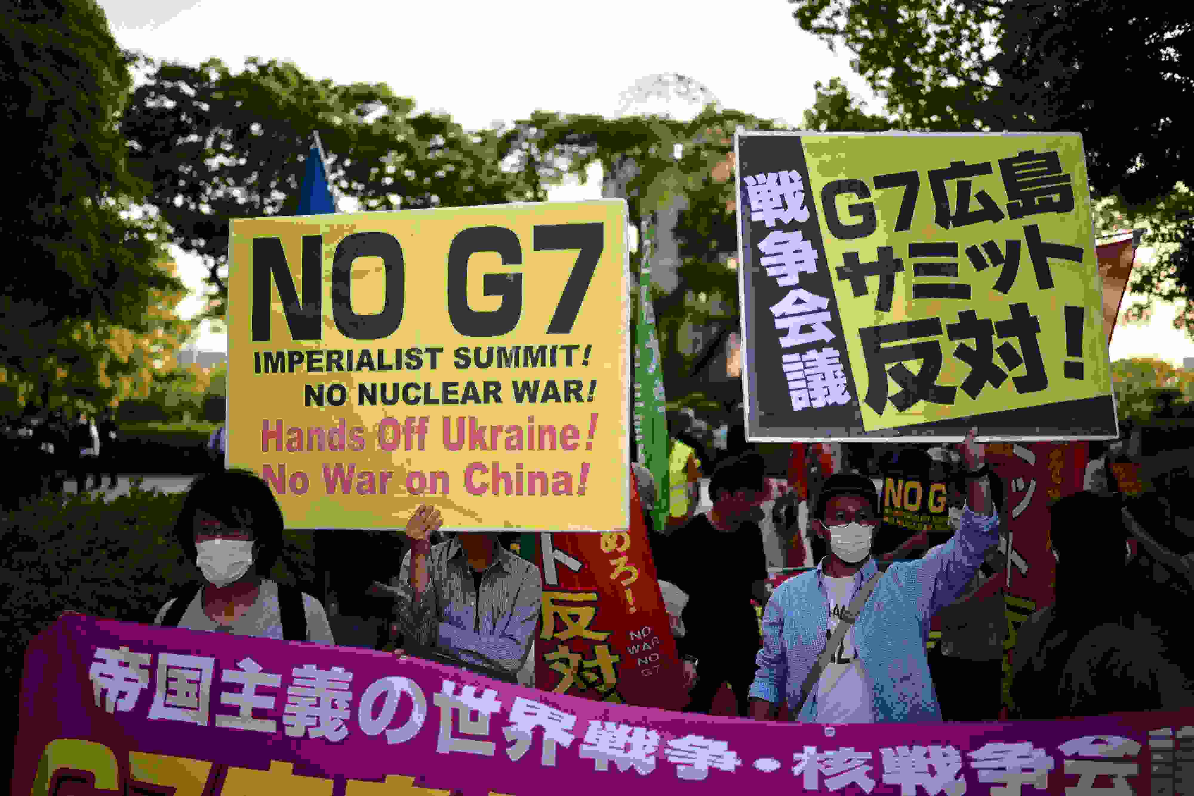日本民眾抗議七國集團峰會在廣島召開