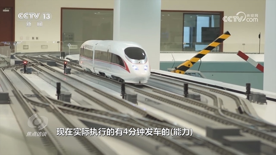 中國通號研究設(shè)計院集團副總工程師江明:“我們要保證所有的車在一條線路上能夠安全,同時又比較密集地運行。我們可以實時知道現(xiàn)在車所在的位置,同時還能知道車現(xiàn)在的速度。經(jīng)過這么多年的努力,現(xiàn)在實際執(zhí)行的有4分鐘發(fā)車的能力。”