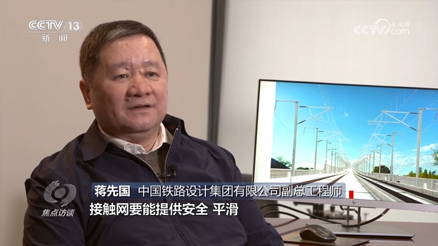 中國鐵路設(shè)計集團有限公司副總工程師蔣先國:“把高鐵比喻成人,接觸網(wǎng)就是血管,能提供安全、平滑、可靠、穩(wěn)定的移動通道?!?/p>