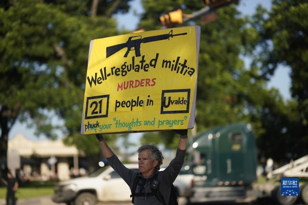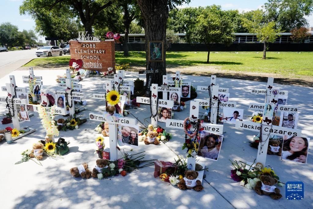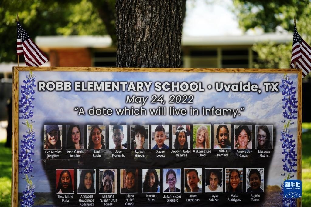 當日是美國尤瓦爾迪大規(guī)模校園槍擊事件一周年。2022年5月24日,19名學生和2名教師在尤瓦爾迪市羅布小學槍擊事件中遇難。