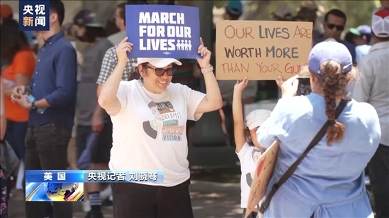 央視記者 劉驍騫:每年六月中旬,美國各地都會(huì)舉行大規(guī)模的控槍游行。這里是洛杉磯市中心的格蘭德公園,正在舉行的這種活動(dòng)的號(hào)召人之一就是“幽靈槍”的受害者。