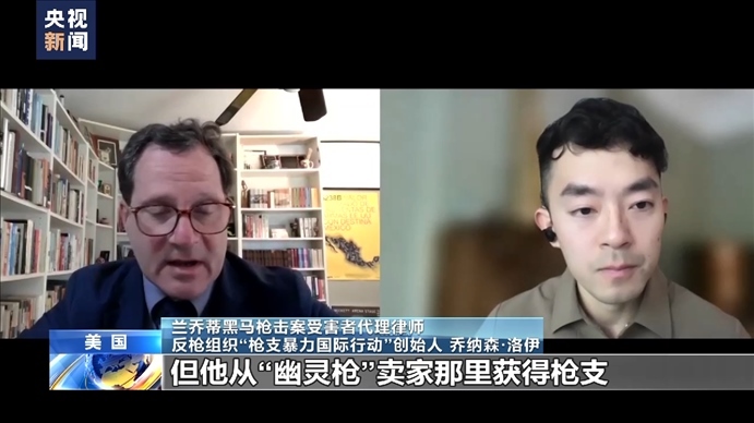蘭喬蒂黑馬槍擊案受害者代理律師、反槍組織“槍支暴力國際行動(dòng)”創(chuàng)始人 喬納森·洛伊:兇手本來不允許購買和擁有槍支,因?yàn)樗蟹缸镉涗?,但他從“幽靈槍”賣家那里獲得槍支,從而瘋狂殺人。