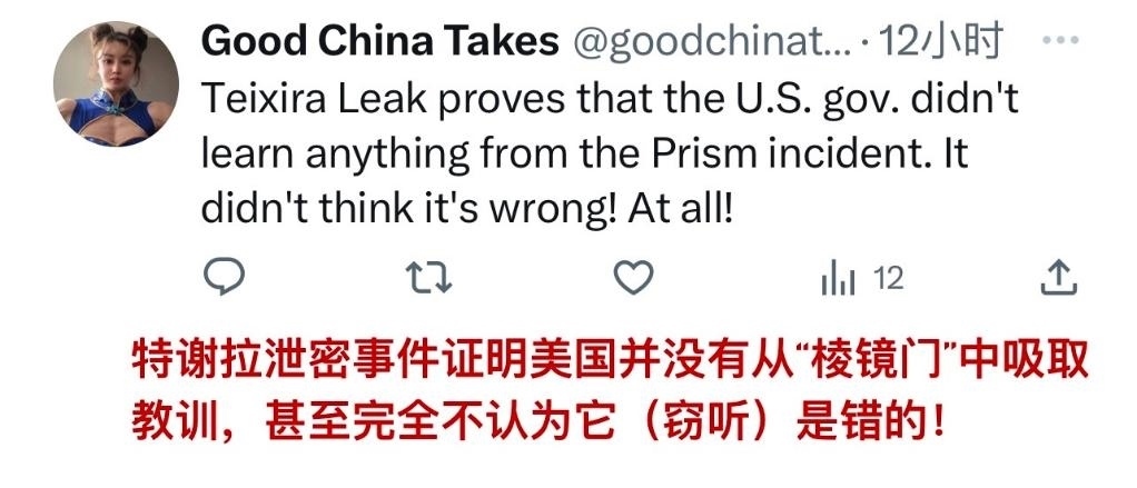 在“棱鏡門”事件十周年之際,新華社推出AI短視頻《“棱鏡門”十周年,美國(guó)監(jiān)控帝國(guó)的本質(zhì)從未改變》,短短24小時(shí)即在海外社交媒體上獲得超百萬(wàn)的瀏覽量。