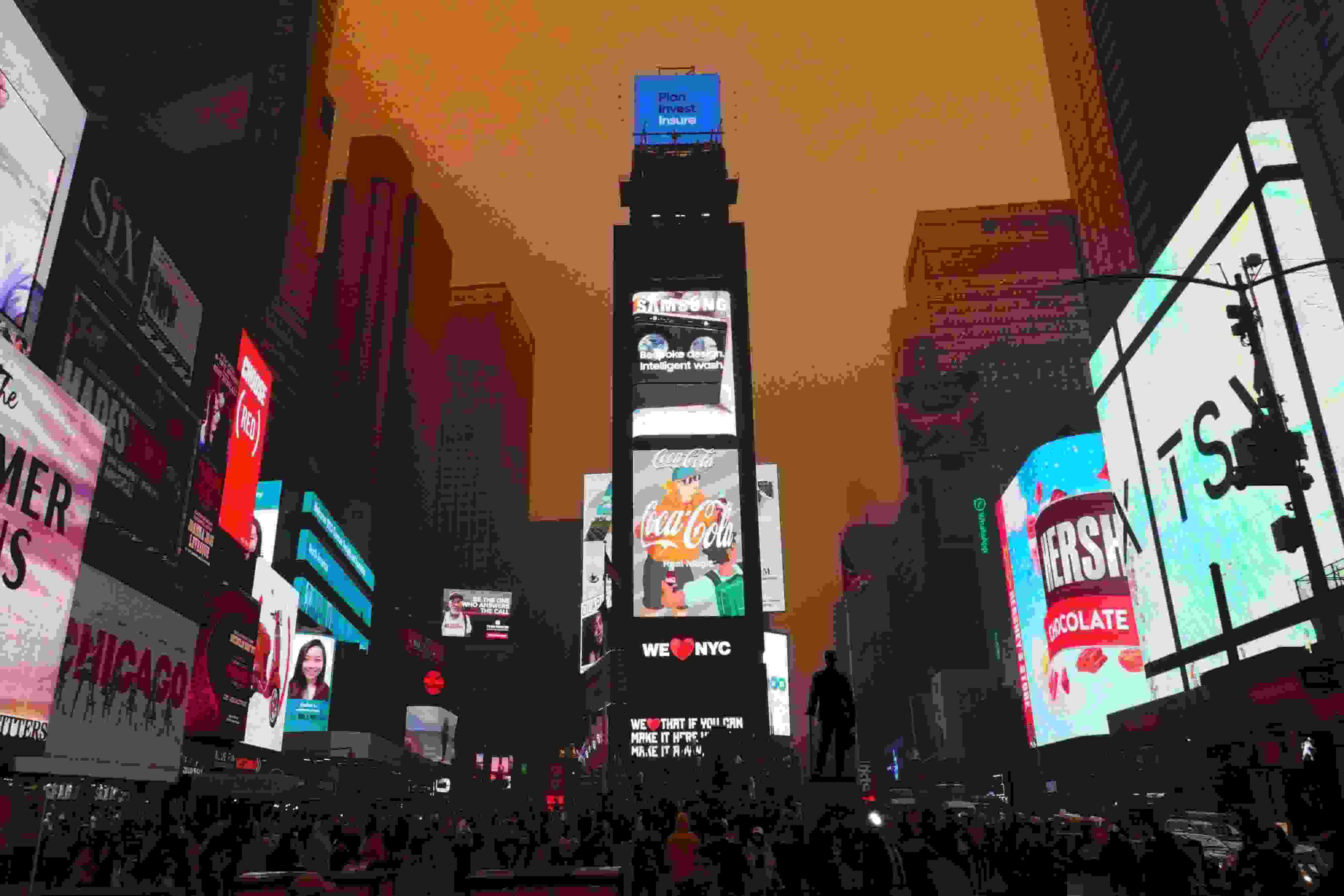 當地時間2023年6月7日,美國紐約,加拿大山火產生大量煙霧蔓延到紐約上空,自由女神像被“吞沒”。