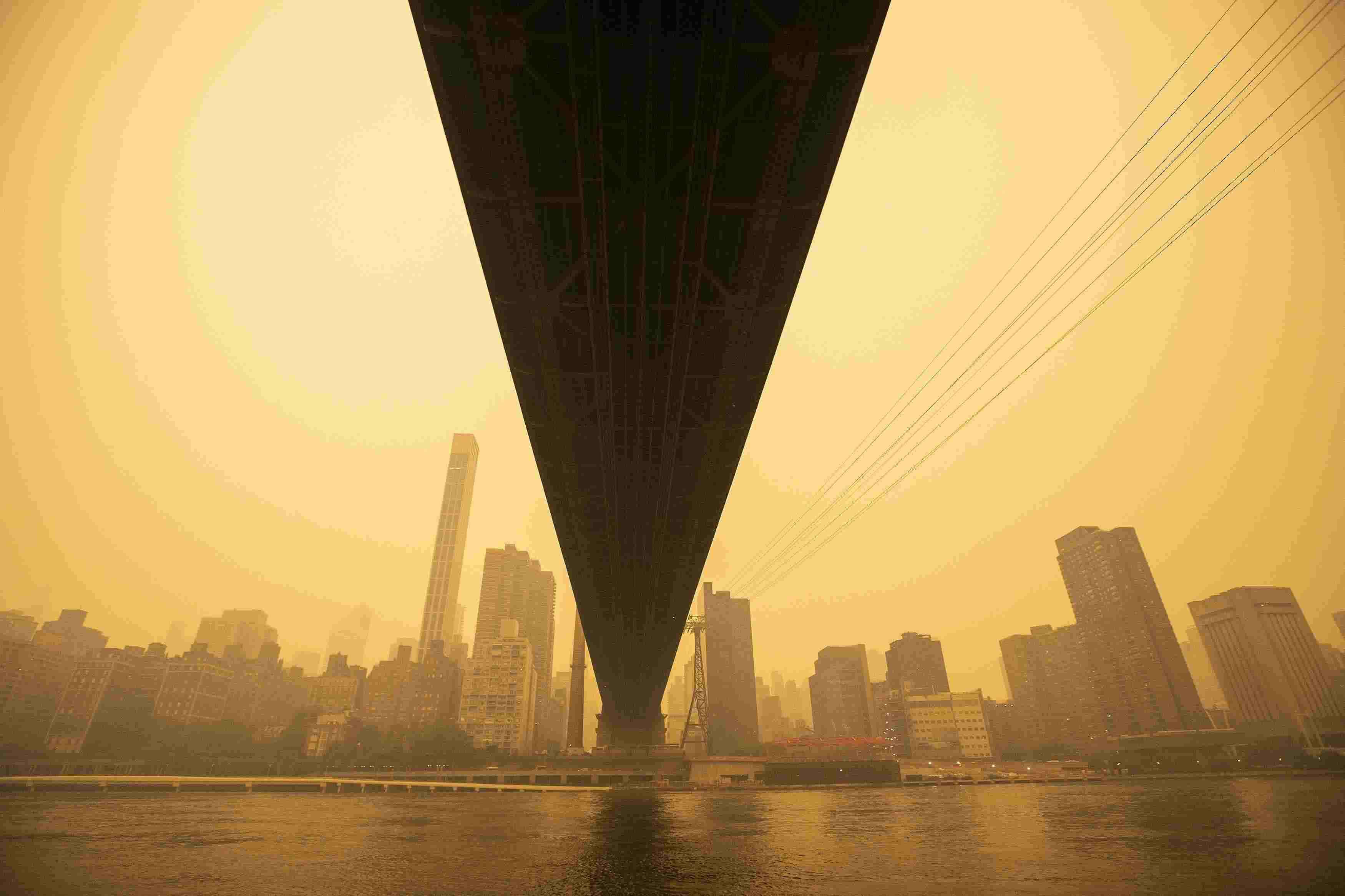 當地時間2023年6月7日,受加拿大野火煙霧持續(xù)南下影響,美國紐約籠罩在“橙色霧霾”中。當天,紐約成為全球空氣污染最嚴重的城市。 視覺中國