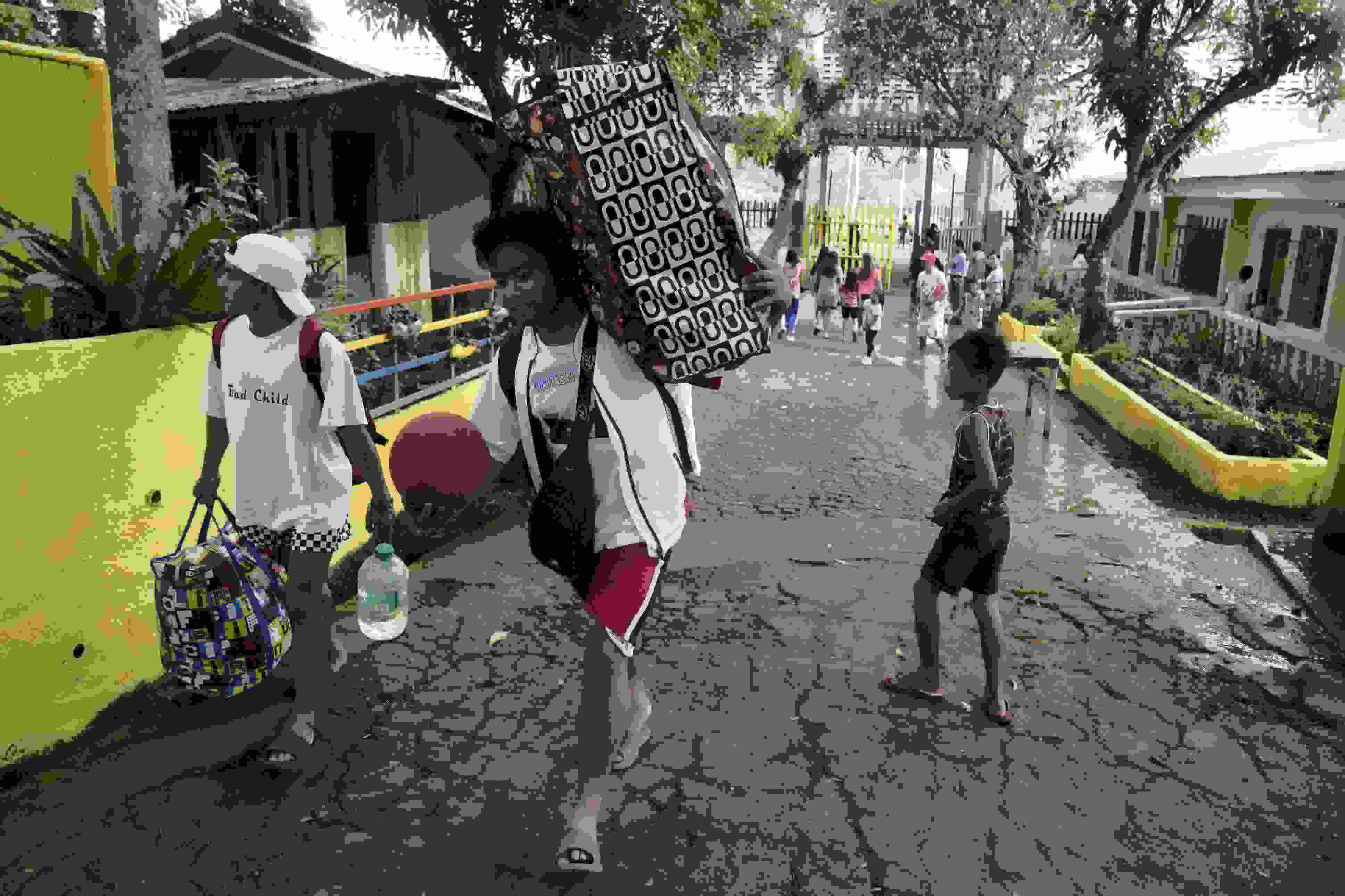 當(dāng)?shù)貢r間2023年6月10日,菲律賓阿爾拜省,撤離人員帶著他們的物品抵達(dá)臨時安置點(diǎn)。 視覺中國
