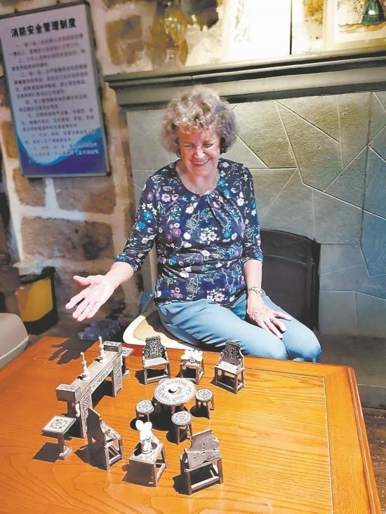 “祖輩生活過、留下痕跡的地方就是家,我們這次是送老物件回家?!蹦卵造`是穆藹仁的兒媳,她這次帶來了三大箱的藏品,并在現(xiàn)場展示了家族在鼓嶺使用過的有著中國青花元素的蒂凡尼瓷碗。程高登捐贈的是其父在90歲高齡時編寫的家族史,書中部分情節(jié)詳細(xì)介紹了20世紀(jì)的鼓嶺生活。來自蒲天壽家族的祖孫二人蒲光珠和凱茜,捐贈的是當(dāng)年家族在鼓嶺避暑時所租住房產(chǎn)的地契原件,還有一本其家族成員編纂的小說,里面也有對鼓嶺生活的生動描述??轮救实膶O女畢樂華捐贈了整套迷你版的石制中式家具擺件,這是畢樂華媽媽當(dāng)年愛不釋手的藏品,也常被兒時的畢樂華用來過家家。