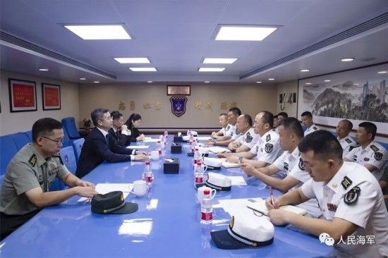 隨后,李津津大使及彭吉中將等一行人登上南寧艦進(jìn)行參觀,彭吉中將在南寧艦艦長和政委的陪同下,檢閱了南寧艦儀仗隊。